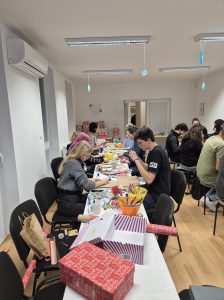 More than 40 people came to INEX’s office to create their own boxes, and Santa Claus has a lot of work to do in order to deliver the 53 boxes. Each box had inside, a salt and sweet snack, a fragrance of some sort, some creams, a sudoku puzzle, a towel, and a postcard also written by the participants. Speaking of Santa Claus, that Saturday we had our Christmas Party. Barbi, Braňo and I prepared the 50 litres of Kapustnica more than 30 hours in advance, elevating my cooking skills from 0 to some number that I’d rather not specify. A lot of people came to the party, bringing snacks and drinks to share with everyone. There were creative activities, in which I did not succeed, as most of the kids achieved better results than me. Sarah and I presented our project outcome, but the highlight was the tombola, where I won a new t-shirt and a toy car 😀