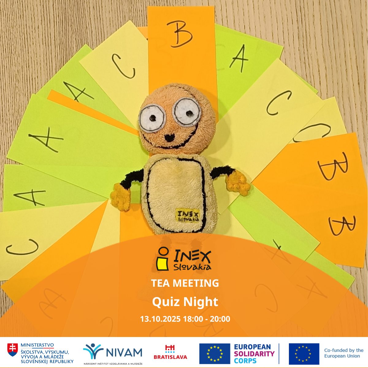 This event is supported by the funding of the Ministry of Education, Research, Development and Youth of the Slovak Republic, administered by NIVAM – National Institute of Education and Youth, and co-funded by the EU under the European Solidarity Corps Program. This event is implemented by the financial support of Capital City of Slovak republic.
