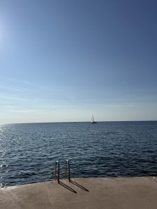Okrem práce sme totižto absolvovali veľa výletov a jeden intenzívny roadtrip, zo severu na juh až do Piranu, kde sme sa okúpali v mori a do Koperu, kde sme fandili všetkým lezcom na IFSC World Cup Koper. Videli sme aj Soču, vodopády, no mohli sme si vyskúšať aj feratu pre miestnych horolezcov v zácviku.