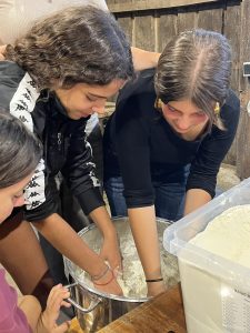 Musím uznať, že s jedlom to bolo v prvé dni trochu ťažké. Každý deň varila trojčlenná skupinka dobrovoľníkov pre celý tím, čo znamenalo variť pre 14 ľudí. Zo začiatku sme sa často smiali, ale aj vnútorne plakali na tom, čo nám bolo položené na tanier, ale praxou a vydaným úsilím sme pripravovali jedlá čoraz rýchlejšie a oveľa chutnejšie. Nemyslím si, že ešte niekedy v živote budem pripravovať 25 kuracích stehien naraz. Každý tretí deň sme si sami pripravovali a piekli chlieb. Naučila som sa, aké pomery potravín treba zmiešať a ako cesto premiesiť. Niekedy ho bolo toľko, že sme sa pri miesení striedali, lebo nás boleli ruky. Za naše úsilie sme potom mali vždy chutné raňajky alebo sme chlieb jedli s džemom ako snack.